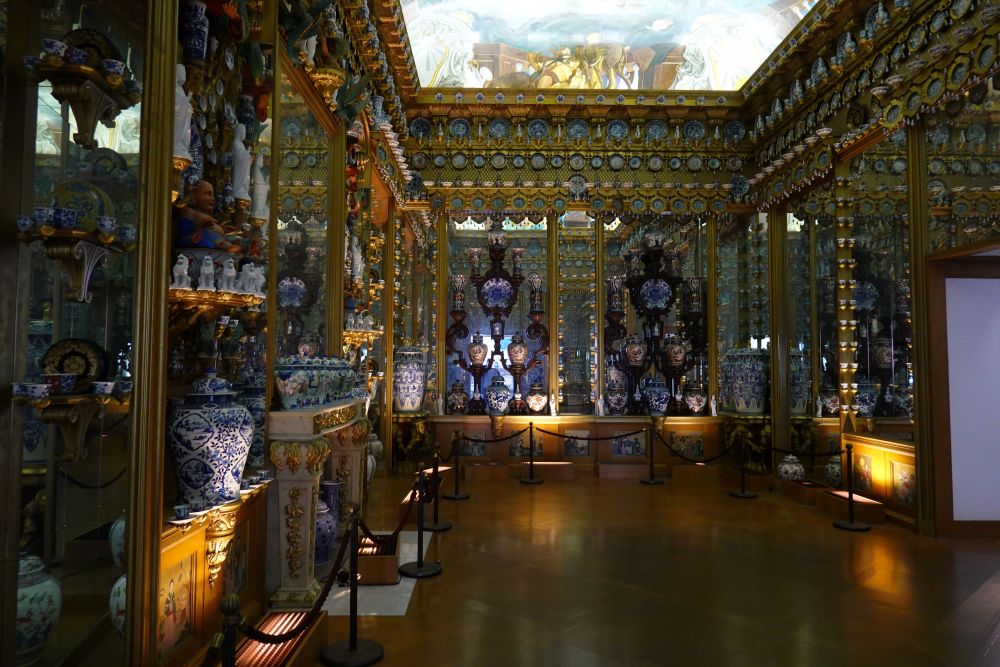 生絞りオレンジジュースなども補給しつつ園内に戻ると、ポルセレインミュージアムを発見。伊万里も近く陶磁器を集めたもので、ベルリンのシャルロッテンブルグ宮殿の陶磁器の間を再現した部屋には圧倒される。やっちまった感は半端ない。再現ルームでこれなんだから、オリジナルはどんなことになっているやら。