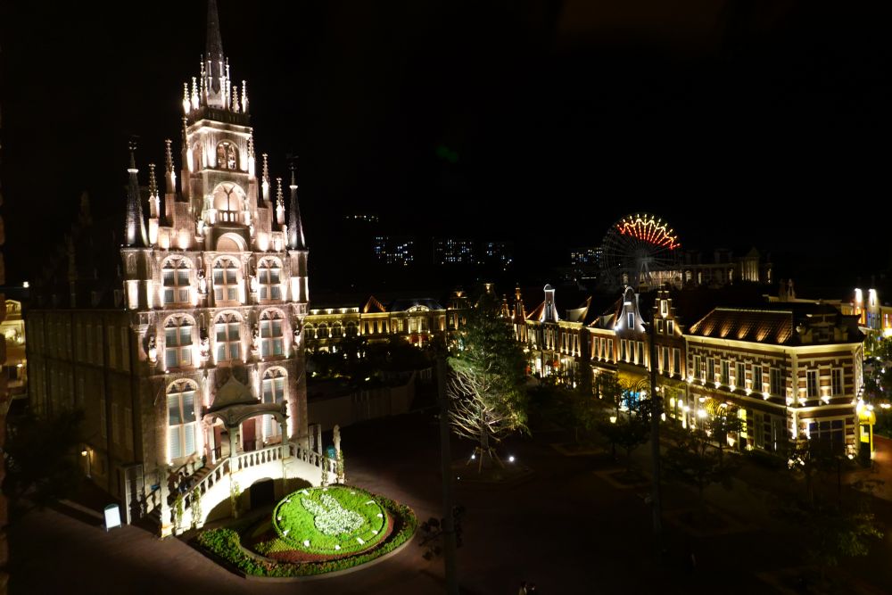 探索はまだまだ続く・・。園内で一番高いドムトール最上階でお登りさん気分最高潮に達したところで、昼食へ。涼しい地中海レストランでパエリアなぞいただく。さらにギアマン・ミュージアムでガラス細工を堪能したのち、ホテル・アムステルダムにチェックイン。夜は部屋からプロジェクションマッピングを楽しんでいたのだが、窓を開けようとしてこの旅一番の惨劇を引き起こしてしまった・・。カメラがビールまみれに。